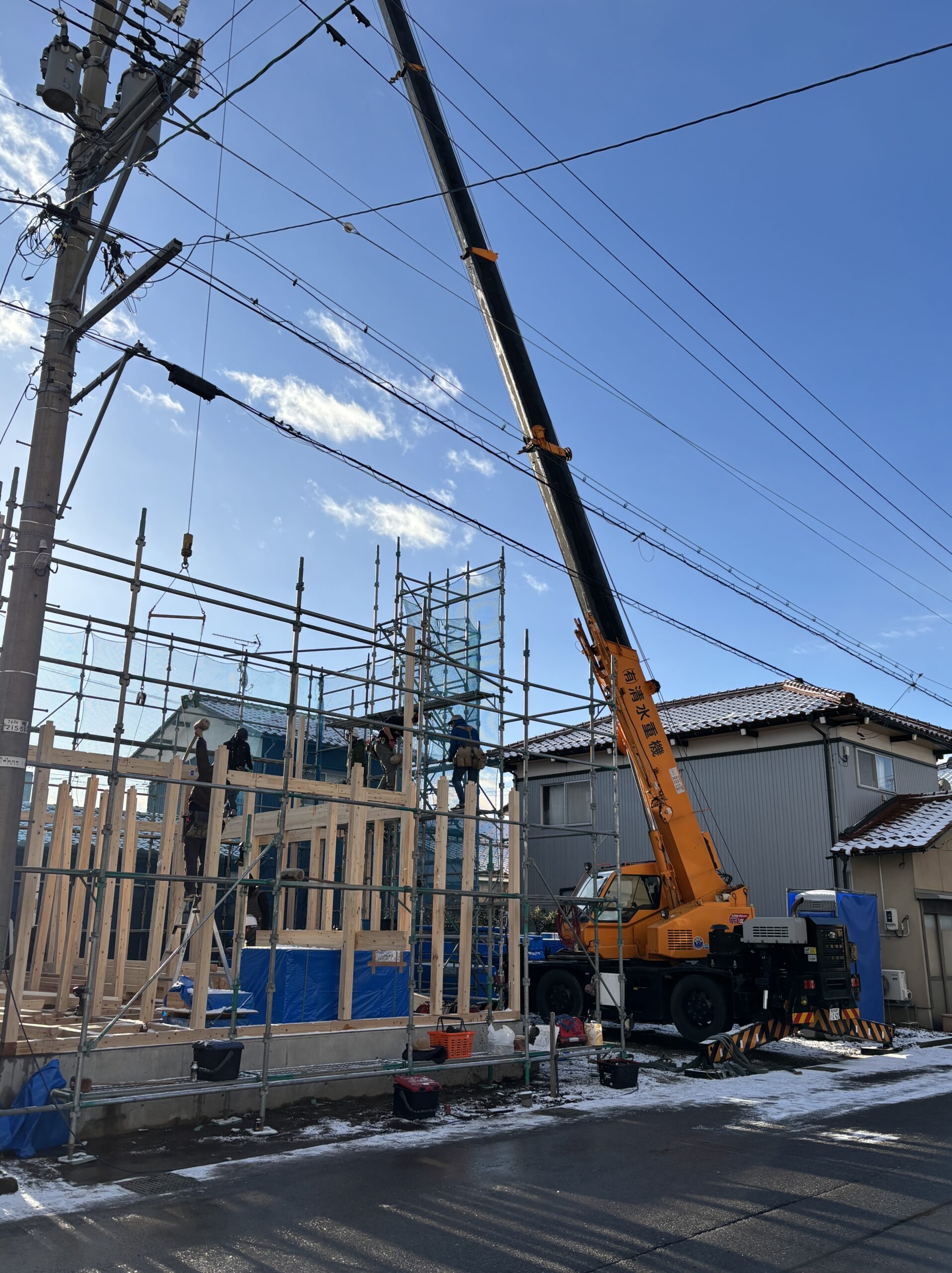 いざ建て始まると寒波どころか晴天?位の太陽が顔を出してくれて、