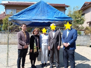 晴れ渡った空に神主様の祝詞が広がっていくような素敵な地鎮祭でした。