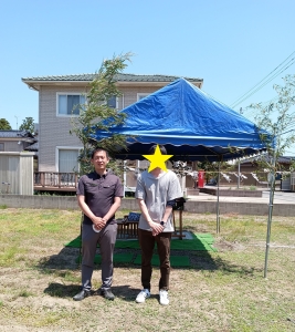 先日の日曜日は、全国的に真夏日のところもあるくらい暑い日でしたねι(´Д`υ) そんな快晴の青空の下、小松市内で地鎮祭を執り行いました。